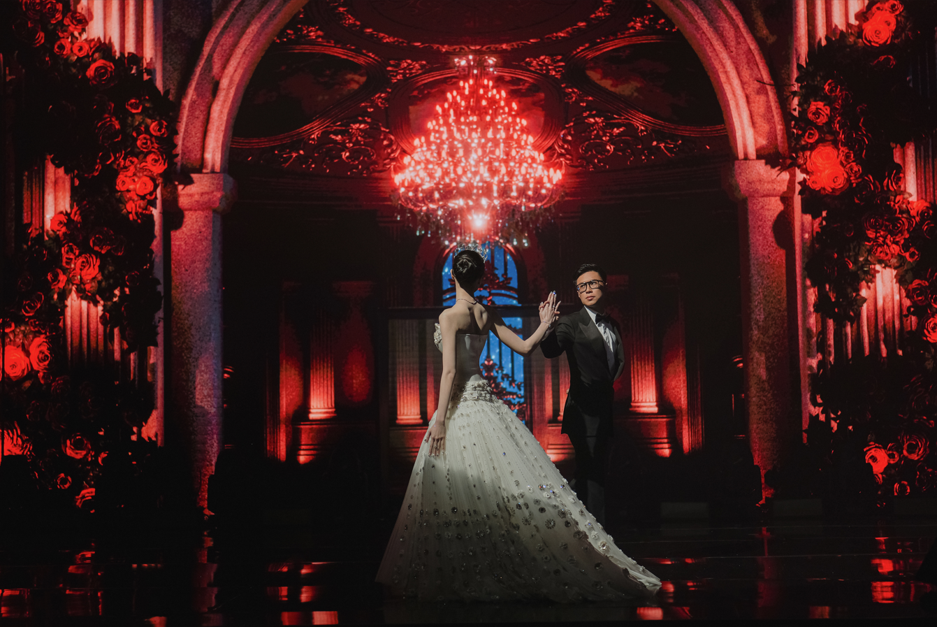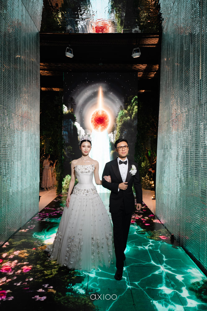 Inside the Grand Ballroom, the world shifted once again. The space was enveloped by an expansive 550-square-meter LED installation that created a breathtaking full-immersive experience. It was as though the room breathed with the moments of the evening — from celestial imagery to soft romantic landscapes, each transition enveloped guests in emotion and beauty. Every visual reinforced the theme of eternity, of love shaped by grace, and of a celebration that reached beyond aesthetics into spiritual meaning.