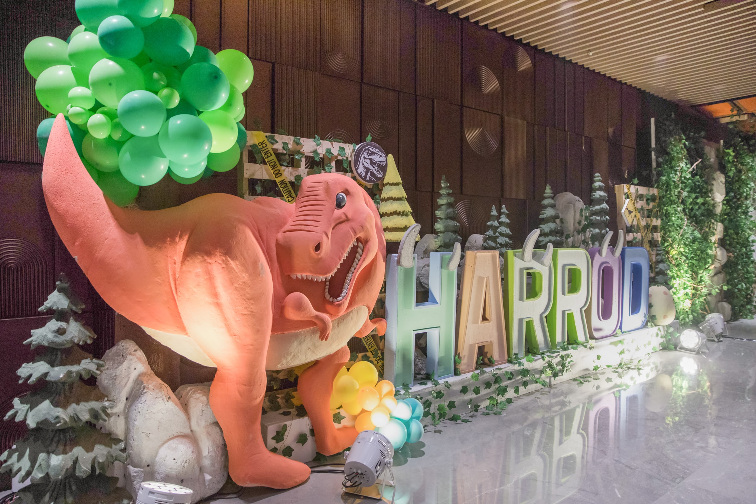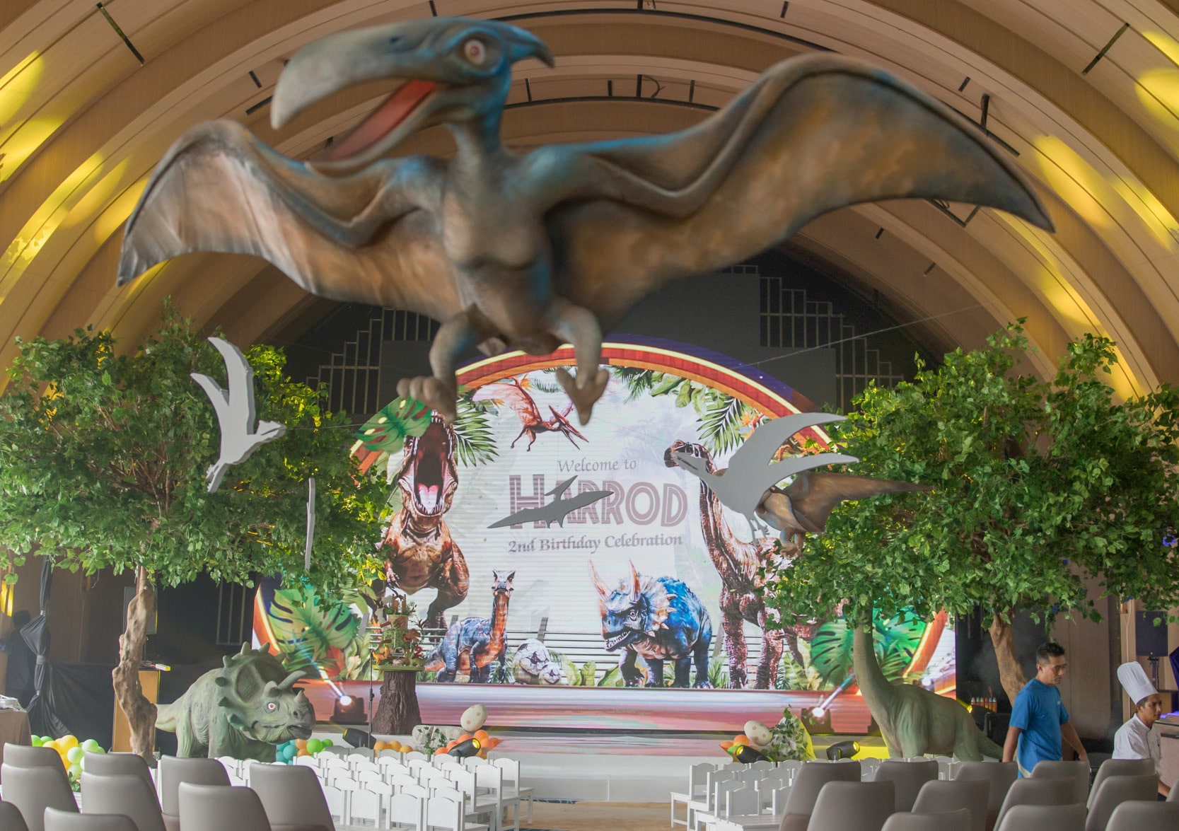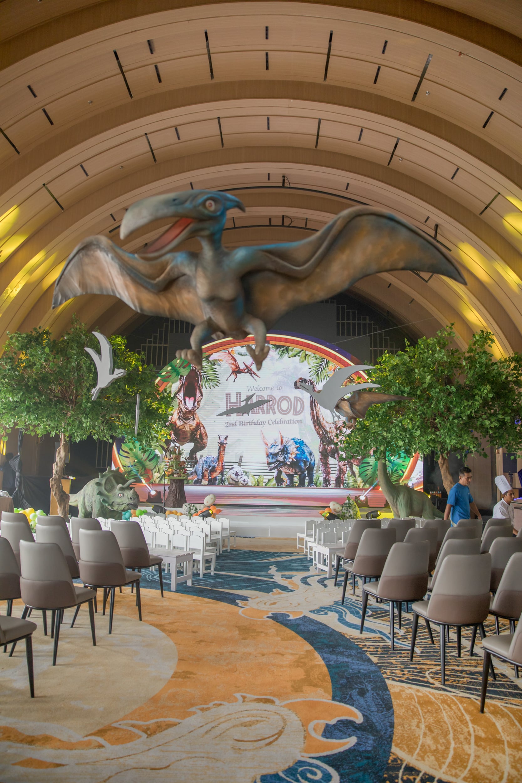 The moment the family stepped into the Odyssey Legacy Ballroom on the 3rd floor, it felt like destiny had already written the script. The architecture—sweeping curves that rose overhead like the colossal ribcage of a fossilized titan—echoed the silent skeletons preserved in museums. Warm, earthen tones wrapped the room like ancient stones warmed by the sun. It was as though the ballroom had been waiting for this very moment, for this very boy, for this very celebration to bring its prehistoric aura to life. And fittingly, Harrod’s birthday became the very first event ever held in this grand, soon-to-be-iconic space. What a way to make history—by recreating history.