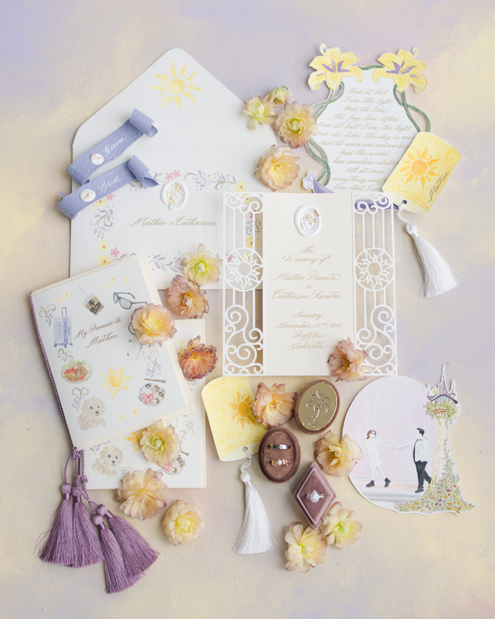 Matheo and Catharine’s wedding unfolded like a living fairytale — a story shaped by light, hope, and the quiet magic of two people finding their way to one another. Inspired by the tale of Tangled, their celebration carried the theme “Where the Light Finds Us,” a reminder that love often arrives not in haste, but in perfect timing, after each soul has wandered through its own chapters of wonder, wilderness, and waiting. It was a tribute to the journey that brought them here — two paths illuminated until they finally converged, like a lantern finding the light it was meant to shine with.